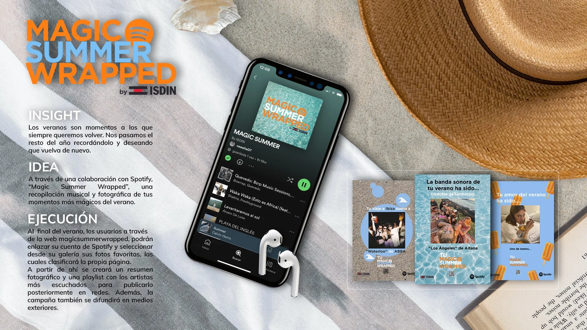 Los veranos siempre son momentos a los queremos volver, nuestros recuerdos más preciados suceden en esta época y desde Isdin, queremos que los recuerdes para siempre. Por eso, basándonos en el concepto ya aportado por Isdin de “veranos mágicos”, decidimos crear “Magic Summer Wrapped”. Una colaboración con Spotify que consiste en realizar una recopilación musical y fotográfica de tus momentos más mágicos del verano. Prepárate para revivir todos tus recuerdos donde y cuando quieras.